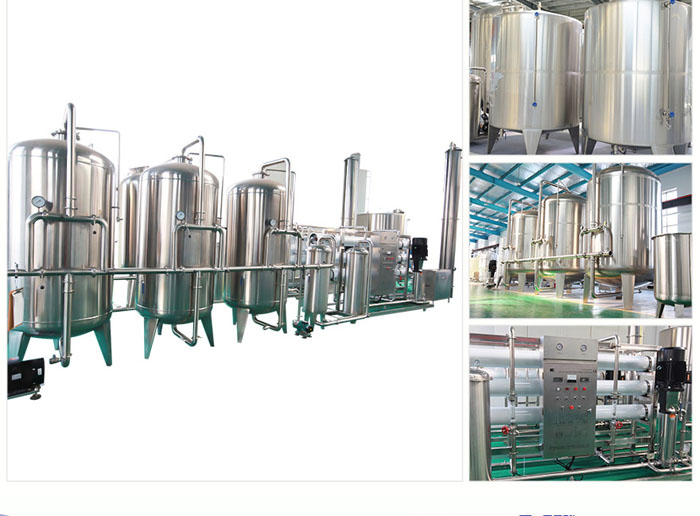 The main equipment are silica sand filter, active carbon filter, sodium ion exchanger,RO( reverse osmosis), UV sterilizer, precision filter, ozone generator, water tank etc. The treatment capacity is 0.5-50 ton/hour.
